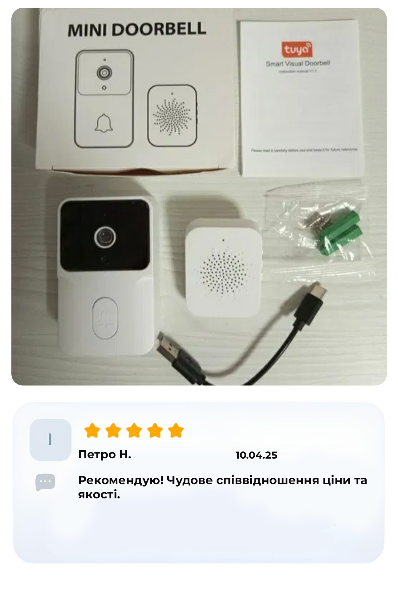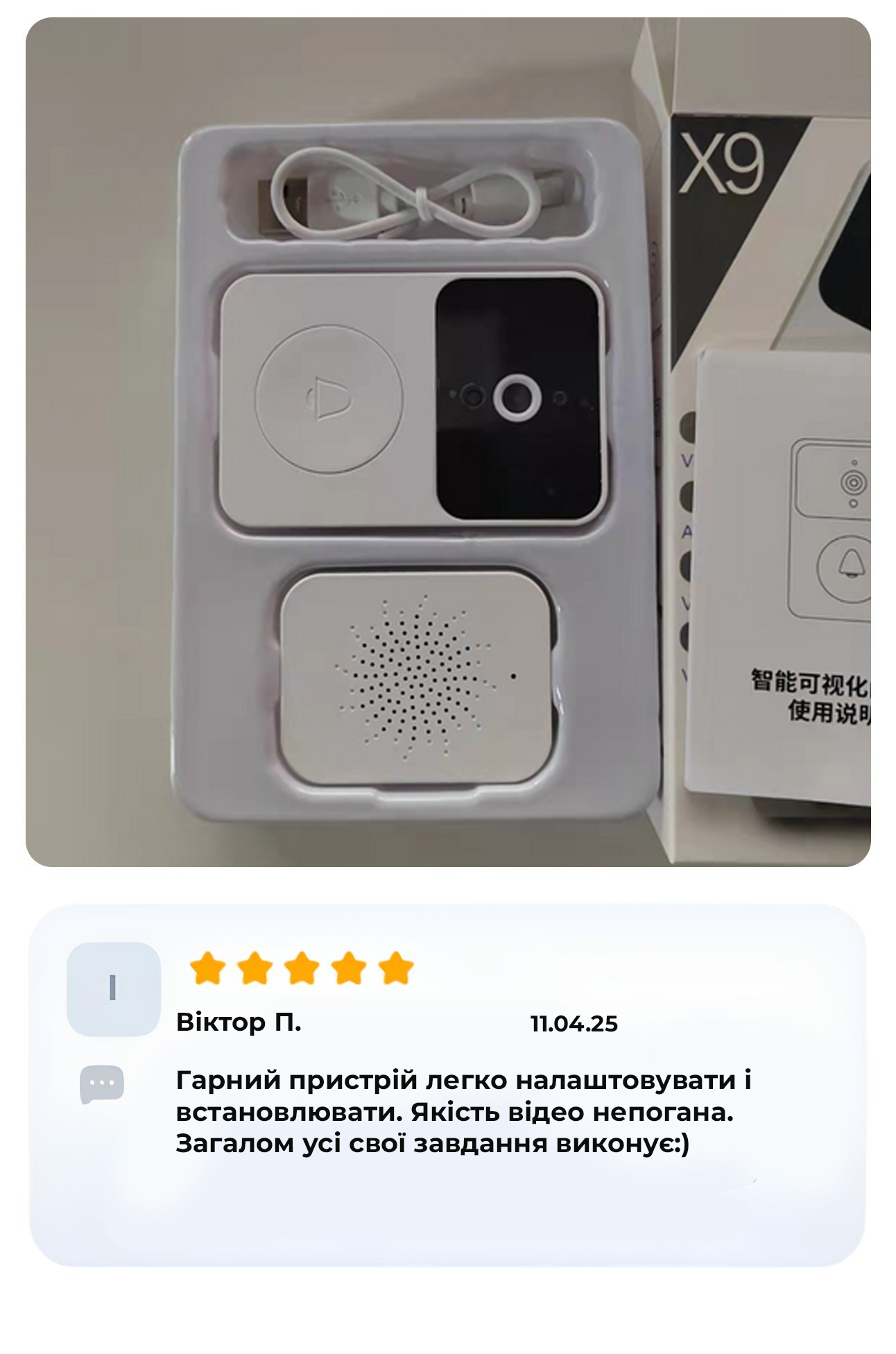 - Комплектація: Відеодзвінок, Динамік, Інструкція, Упаковка